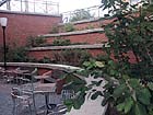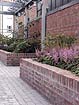 Många murar i Järla Sjö är tegelbeklädda, som dessa i gradänger vid restaurangen nedanför torget.