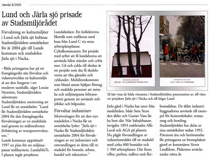 Statsmiljörådets utmärkelseJärla Sjö 2004