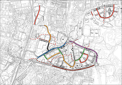 stråk för gång- och cykeltrafik genom området. I vissa lägen sammanfaller